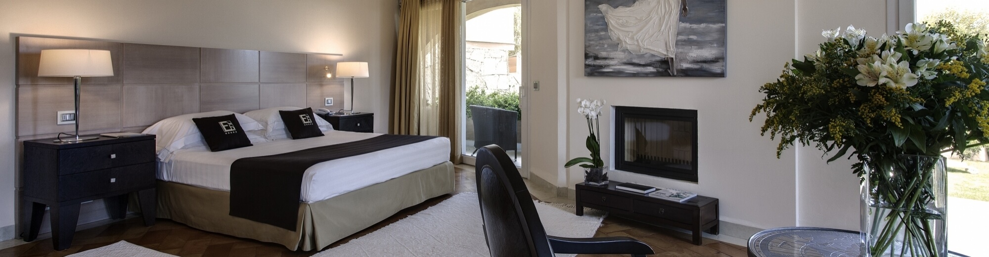 In dieser 66m² großen Suite werden die Reflektionen des warmen sardischen Lichts kombiniert mit einem raffinierten Ton in Ton Dekor.